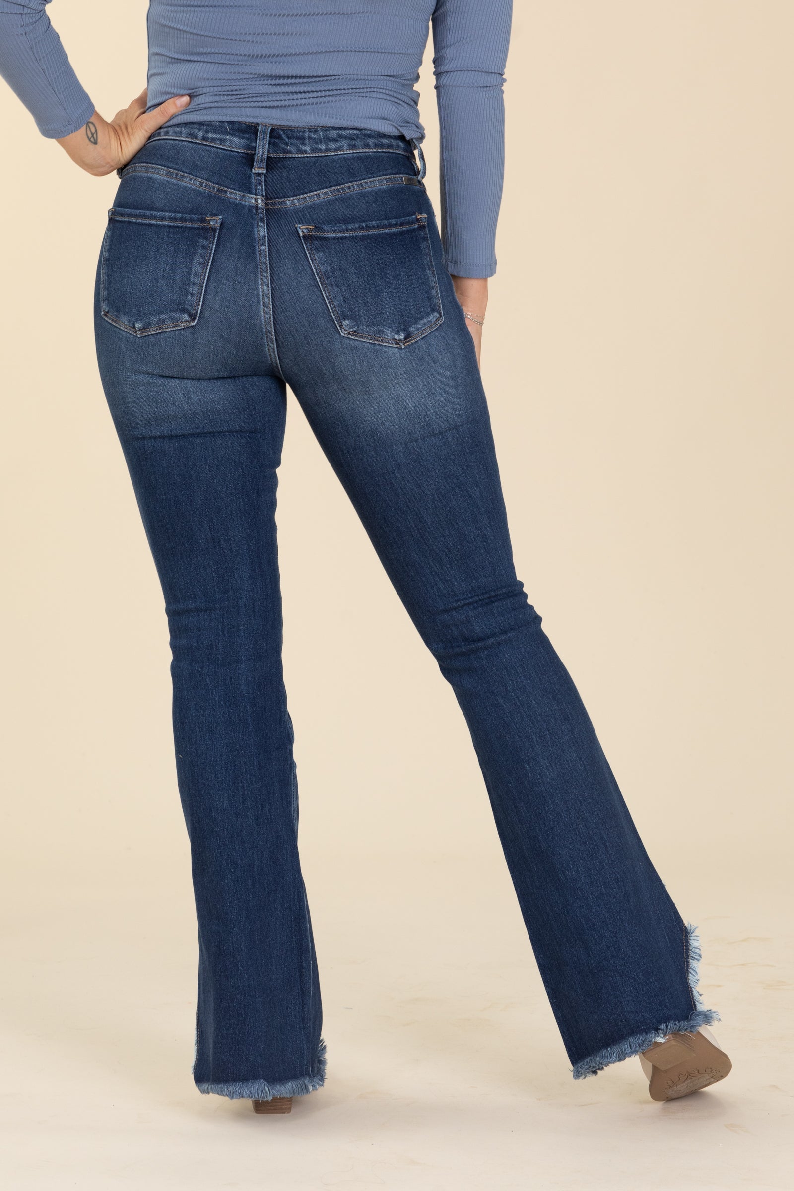KanCan Dark Wash Bootcut Jeans Fray Hem