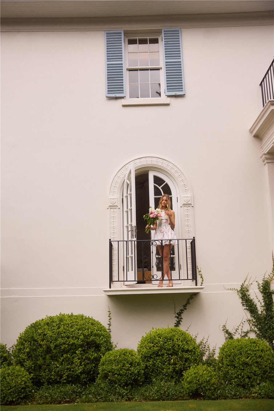 The Love And Luxury Mini Dress is your go-to for warm-weather celebrations. Featuring a chic high neckline and playful short sleeves, this mini is adorned with a lively floral print that radiates charm. Its flattering silhouette and flowy hemline create an air of effortless elegance, perfect for twirling through summer days and moonlit evenings.